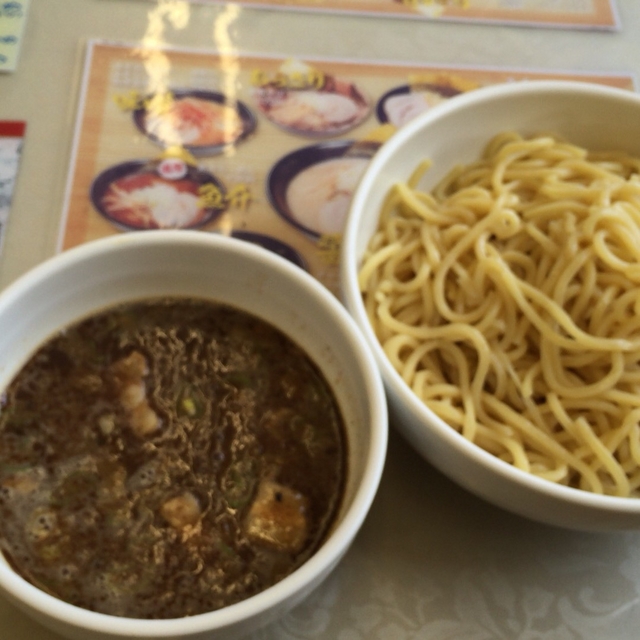 2015/06/20 13:00過ぎ初訪問 魚介つけ麺(780円) 以前から気にはなっていたんですが、近隣には、喜元門、角ふじ、三水などがあり、なかなか足が向かなく、本日やっと訪問。 券売機で、標題をPUSH。麺大盛をチョイス。 7分くらいで着丼。 まず見た目••• 麺は安っぽい感じ。 つけ汁を啜ると、豚骨醤油に魚粉って感じ。 食べ進めるも、美味いっ‼︎とは感じられず••• 残念でした。 ご馳走さまでした。