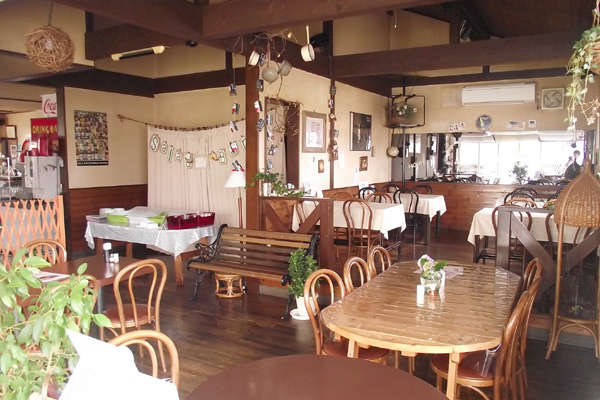店内はひろびろ、駐車場ももちろん完備。木のぬくもり溢れる当店は温かい雰囲気でお食事できます。
