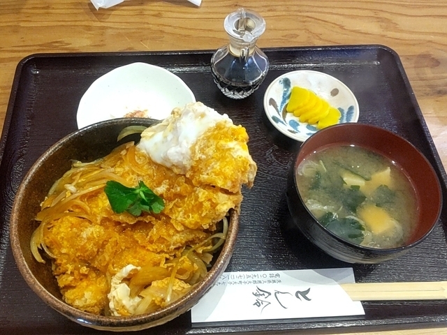 道の駅近くのお食事処 とんかつメインみたいです ◆かつ丼900円 うつわからはみ出るくらい大きなかつ肉はやわらくてジューシーで美味しい 玉ねぎが大量でアクセントに、タレもそれほど濃くないので 食べやすく完食しました
