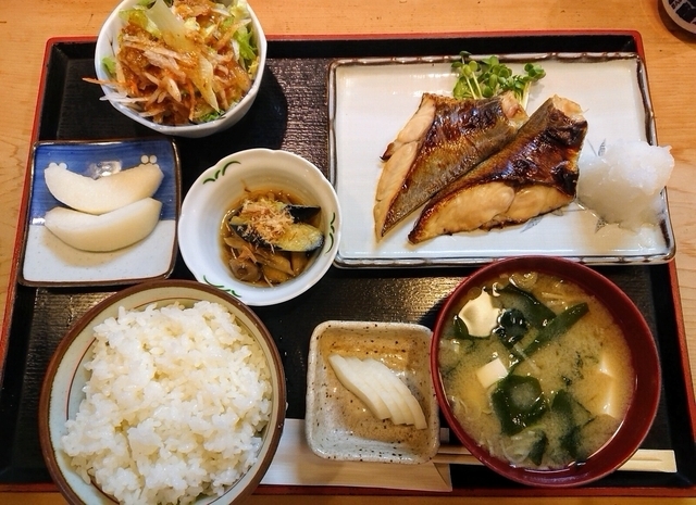 日替り焼魚ランチはメインの焼魚にサラダ、煮物、フルーツもついてたいへんお得な感じです。 カウンターでは、親父さんが気さくに話しかけてくれます。 入口にあるメニューに今日の魚が表示してあると選びやすいと思います。