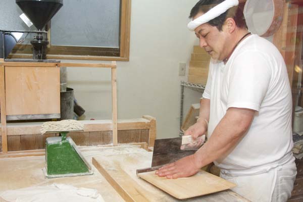 主人がそばを打っている姿を、ガラス越しに見ることが出来ます!