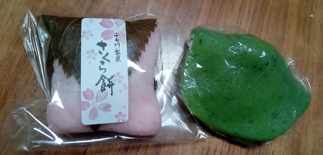 お彼岸の手土産に「さくら餅」と「草餅」を頂きました。どちらも春を感じる和菓子。餡は、両方ともこし餡でした。