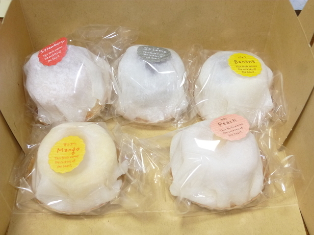 以前から気になっていた、あかちゃんのほっぺを買いに行ってきました。いちごだけでなく、ブルーベリーやごま、ラズベリー・抹茶もあり、気になったマンゴーも買ってきました。やわらかすぎて手で持てないほど、ふんわり。ナイフで半分にし、和のお菓子なのにフォークを使っていただきました。甘さがほどよくて、クリームもふんわりで、至福の時が過ごせます。意外にボリュームもあるので、 食べごたえがあります。でも、ペロリと食べちゃいました。