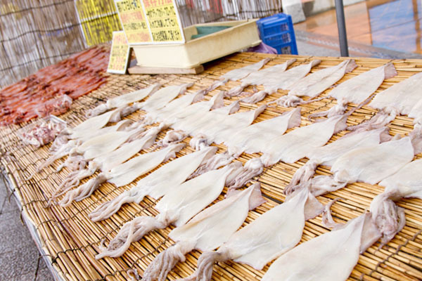 テレビでもお馴染みの店先にあるくるくる回るイカ。 子どもたちのお気に入り。 干物以外にも冷凍の魚商品がいろいろありますよ。