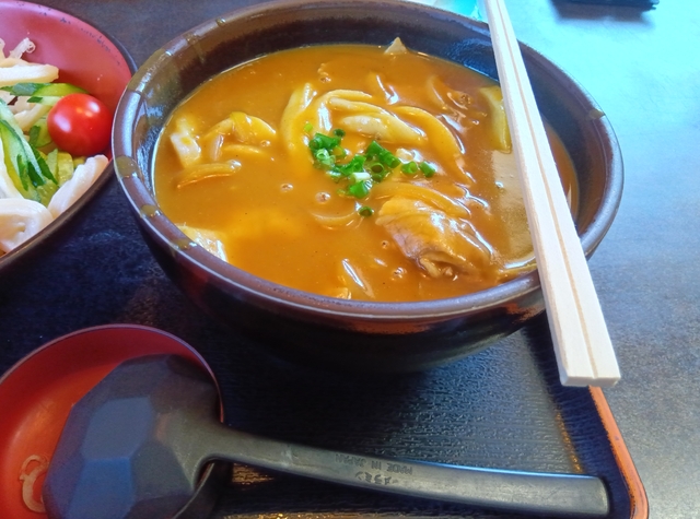 那珂町店がないのでこちらへ。 お盆休み中に嫁さんといづみやのうどんが食べたくなって、那珂市まで。 14時前に着くも終了の看板が~・゜・(ノД`)・゜・ とりあえず駐車場に入って転回しようとしたら店からおばちゃんが。 うどんが後二人前あるからどうぞって(*´∀`*) ギリギリセーフでした。二人共カレーうどんを。 カレーは業務用の粉なんだろうけどお店によって味が違うんですよね。 ちょっとしょっぱい感じでしたが美味しかった。 具はお肉は豚バラがきっちり3枚とネギ、玉ねぎ。玉ねぎもうちょっと欲しいな。