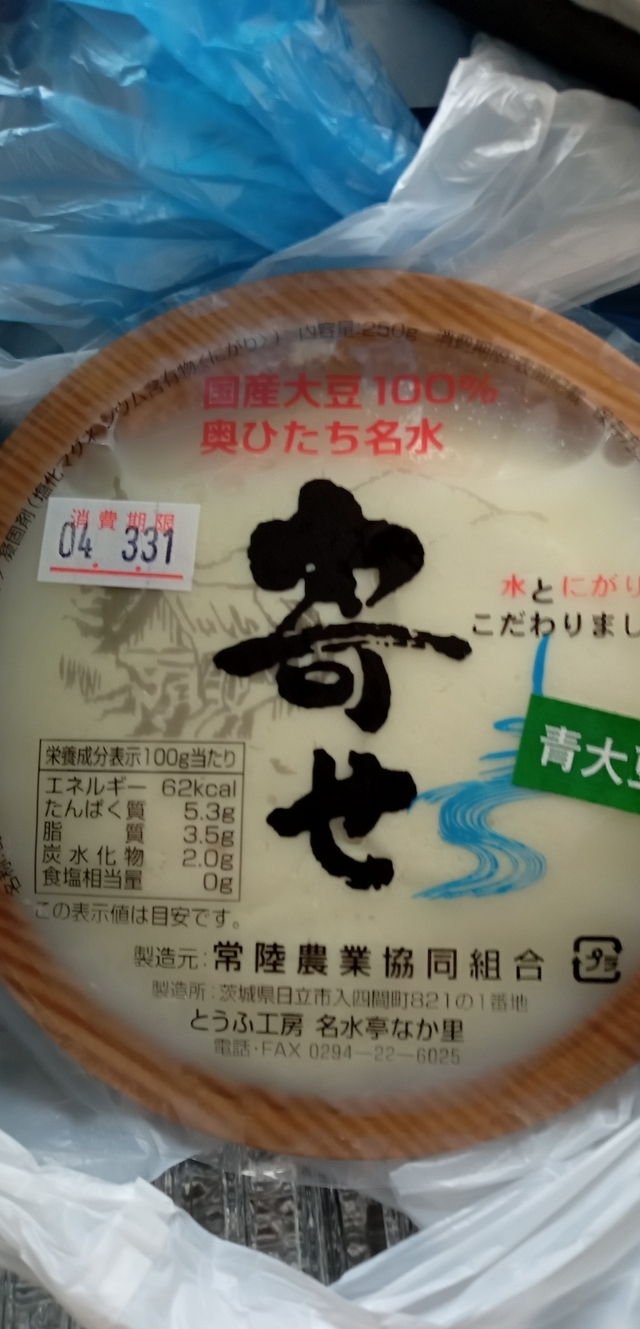 ペットボトルを持参して、敷地内の水汲み場で水を汲みました。ここのお水は、とっても美味しいです。 工房の方で、お豆腐とお得になった青大豆の厚揚げを買いました。