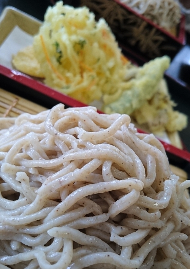 農産物直売場に併設された 蕎麦屋さん いつも行列が出来てます。 今日(木曜日)は 11:30に到着、並ばず席へ(°▽°) もり天そばを注文。 そばはもちろん、野菜の天ぷらも どれもとても美味しかったです♪ 天つゆとそばつゆと一緒なので 出来れば別がいいかなぁ…と。