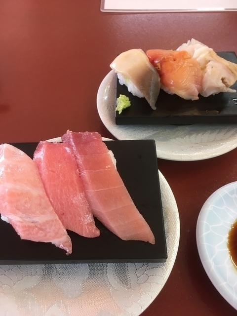 友人達と大洗にいきました。 行きがけに見つけて入りましたが、とても美味しいお寿司に大満足でした。 今回は回転寿司のブースに入りました。私は鮪三種盛り、友人は貝三種盛りを注文。どちらも美味しかったです!