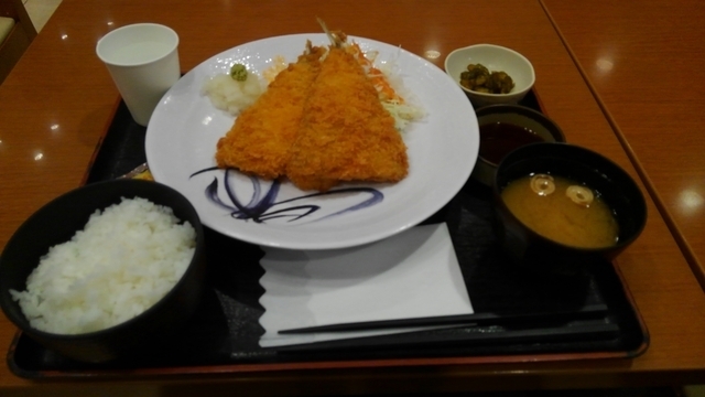 平日の金曜の夜20時頃に来店しました。 家族連れや仕事帰りの方、行楽(?)の帰りっぽい方など、結構な数のお客さんがいましたが、店内が広いので密になっている感じはありませんでした。 注文はアジフライ定食にしました。まぁまぁな大きさのアジフライが2枚とキャベツの千切り、香の物、ご飯、味噌汁で、量も味も標準といった感じです。冷凍のアジフライを揚げているように思いますが、高速のSAなので及第点かと思います。