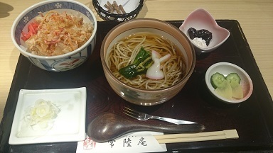お昼に友部SAの『常陸庵』にて昼食。 席に着くとお茶と蕎麦のかりんとうのサービス☆ 「温かい蕎麦とかき揚げ丼のセット」を頂きましたが 手打ちお蕎麦が美味しかったです。 よく見たら、かまぼこが兎でびっくり【≧∀≦】