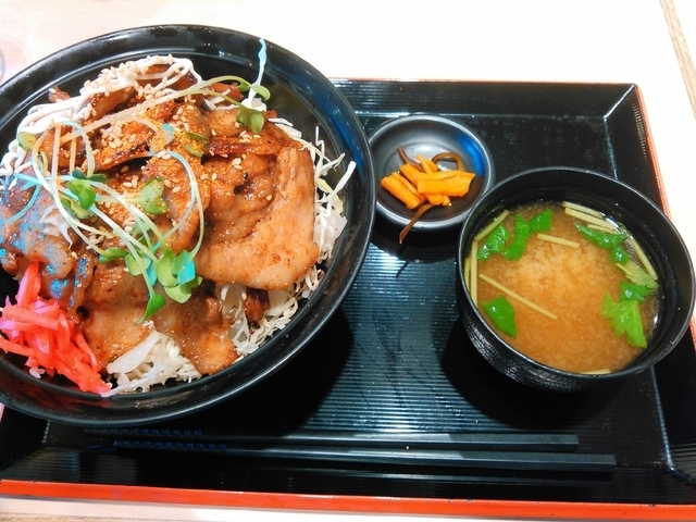 こちらのそばと迷ったのですが、フードコートのとん丼を頼みました。 豚肉がいっぱい乗ってボリュームあります。マヨネーズや辛子があるので味変して楽しめます。