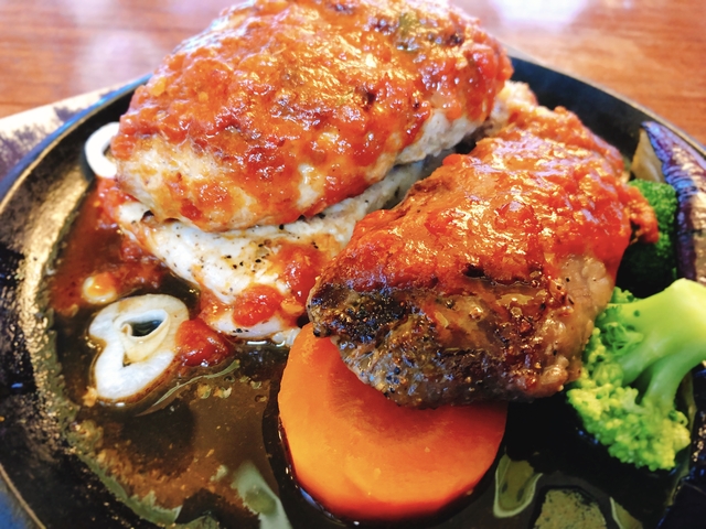 高級感たっぷりのホテルのエントランスを抜け入店。初めてだとちょっと躊躇してしまう雰囲気ですが、メニューは超リーズナブル!メガセットが何種類かあったので、ハンバーグ、ビーフステーキ、ポークステーキのセット1000円をオーダー。てっきり単品価格かと思いきや、ライスとサラダバーまでセットされていてしかも税込! サラダバーコーナーには、なぜかおにぎりまで…。 他のメニューも一般的な相場よりも安めで、かつ全てサラダバー付き。 メガセットのハンバーグは肉汁たっぷりで美味。ポークはあっさりで、ビーフはちょい固めでした。 メニューも豊富で全て安いので、リピートの価値ありです。