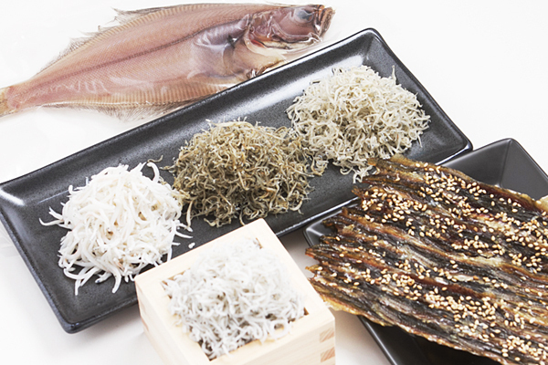 冬季限定となるカレイ、サヨリの干物の他、伝統のタレに漬け込んだカタクチイワシの桜干しもおすすめ!