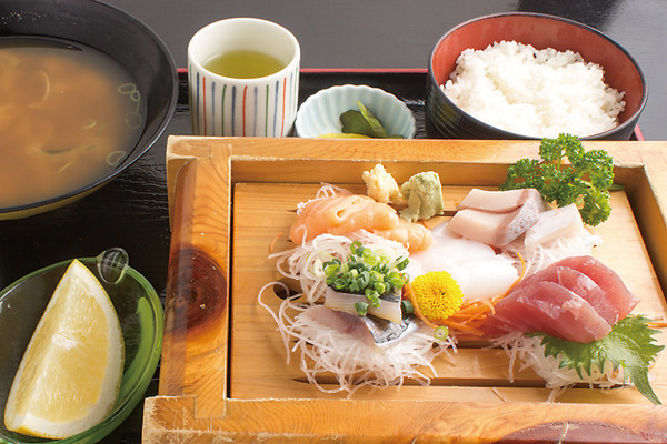 店長おすすめの「刺身5点盛御膳」1200円。大洗サンビーチを眺めながら是非!