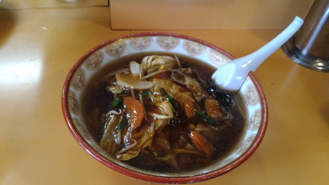 スタミナホットを選択。キャベツ大きめ、レバーは小ぶり。キクラゲがいい位置を占めている。甘辛餡スープが絶妙の味。次回は、焼き肉冷やしに挑戦したい。
