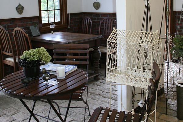 広い庭を配する欧風造りの一軒家のガーデンショップ。店内にはバロック音楽が流れ、静かな雰囲気が漂います。