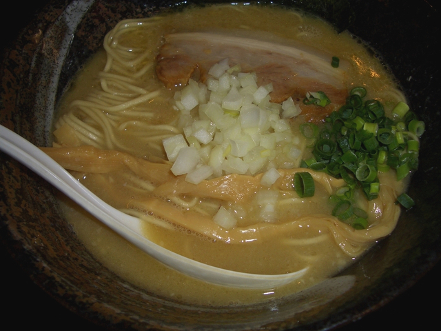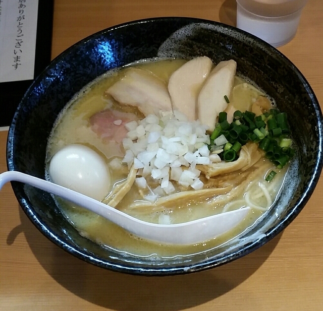 鶏そばを頂きました♪ コッテリの鶏白湯スープがとてもコクがあり、固めにゆでたストレートの細麺によく絡みます☆ 麺はプツンとした歯ごたえではなく、アルデンテな感じの歯ごたえでした♪ 玉ねぎのシャキッとした食感が良いですねぇ。メンマもこれまた良い歯ごたえ☆☆ チャーシューは口の中で溶けてしまう柔らか仕上てでした。 また訪問します
