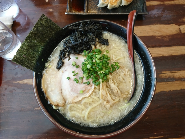 美味しいと評判は聞いていましたが、行ったことがなかったのでいざ訪問。 こちらのお店は並盛り、中盛り、大盛りと料金が変わらないとのこと。うれしいですね。 シンプルに醤油豚骨ラーメンをオーダー。 具はチャーシューに穂先メンマ、大きめの海苔。 スープをすすると、クセがなく美味しい。 麺もツルツルと入っていきます。 がしかし、最近胃が小さくなっているせいか、最後の方はきつかった。 あと、若干しょっぱいような気がしました。 ただ、豚骨がそこまで得意でない私でも美味しくいただけましたので、人気の理由が分かったような気がしました。