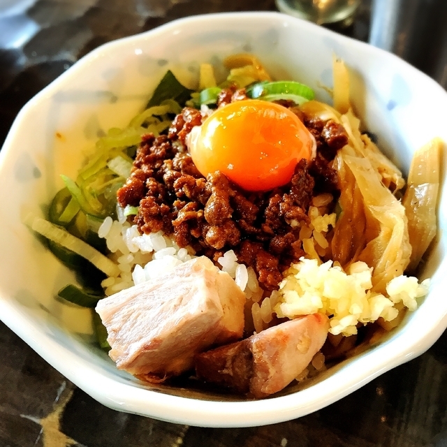 今回はEBI丼をプラス。ラーメンやつけ麺も美味ですが、丼も美味です!ちょっとご飯物も食べたい時にぴったり。お肉に味が染み込んでいてたまらない一品です。