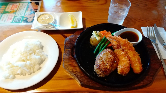 法事の後の食事会で11名で利用しました。土曜日の13時頃でしたので店内は満席でしたが、お店の方が空いた席に順番にご案内していただき、無事に食事会をおこなうことができました。 とにかく、お店の方の対応が親切丁寧でした。そして、ハンバーグ&海老フライとサラダバーを注文したのですが、お料理すべてがとても美味しかったです。今度は、家内と二人でゆっくり食べに行きたいと思いました。
