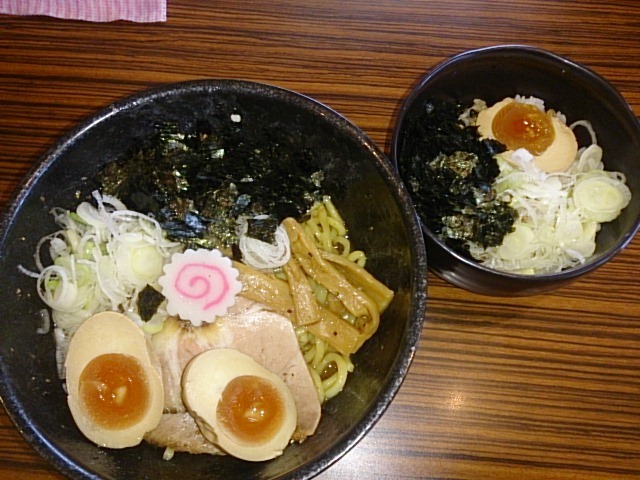 約一年振りにて汁無をポチッとし注文\(__) やはり値上がりしてましたね、、、デフォ単体30円UP,味玉は高い↓↓なのでコ・ス・パは低め▽…(自分談) タレとのバランスはぃぃと思うが具材がやや寂し△ シコッ,モチッ,パッツン麺は仕上がり良好♪なので、具材の工夫か?!麺量増やして頂けると助かるんだけどなぁ~!! 賄い丼(飯)は至って普通也!! なので、黒胡椒と一味多めで追い飯にて頂きました( ̄ー ̄)