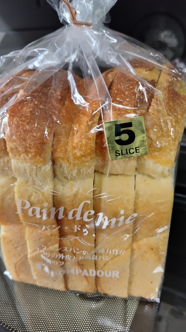 「パン・ドゥ・ミー」5枚スライスを購入しました。多種多様の食パンがあって、一瞬迷うのですが、ついこの食パンを手に取ってしまいます。トーストすると食感が、サイコーです!!