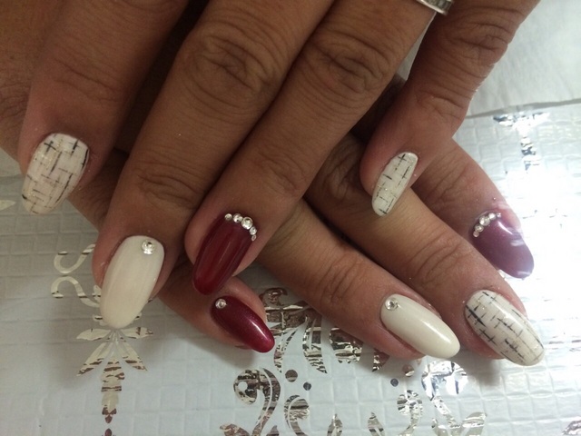 今回はボルドー✖️白のツイードの冬ネイル♡ とっても可愛く仕上げてもらいました(*^^*)こちらで5,200円。