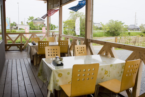 テーブル・座敷席のほか、テラス席も用意。ペットも同伴可能で、霞ヶ浦が見渡せる心地よい空間です。