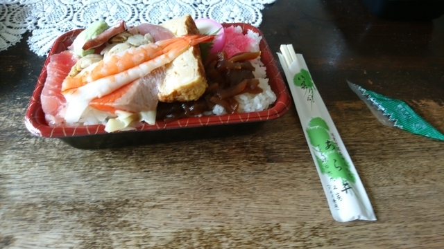 この日は久々に店内でちらし寿司をいただくことに。 ネタは、エビ、タコ、イカ、ハマチ、サーモン、タマゴ、かんぴょう。 お腹いっぱいになりました。 ごちそうさまでした。