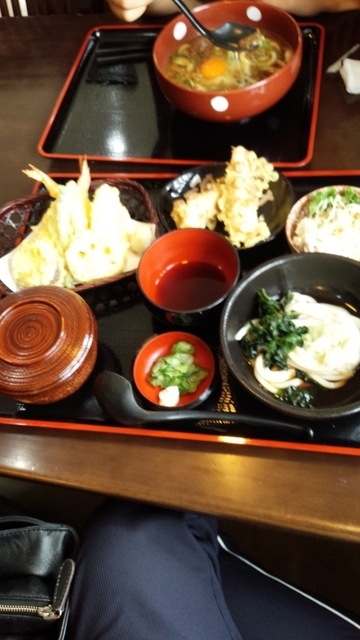 【彩り海老天おろしうどん】 さっぱりと冷しうどんをいただきました。うどんは3玉まで同一価格です。メインの海老天は1尾盛りと3尾盛りがあり、価格が異なります。いただいたのは1尾盛り(940円)。3尾盛りは単品で1,210円。 海老天のほかに小さなかぼちゃの天ぷらや錦糸玉子、きざみ海苔、ネギなどがのっています。 大根おろしや生姜を冷たいうどんにからめておいしくいただきました。 暑い季節にはおすすめですね。ミニ丼を付けたセットもありました。