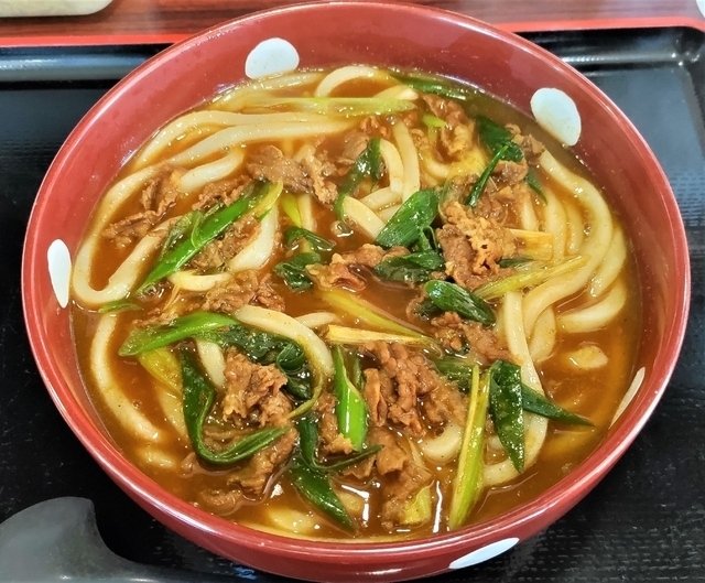 《だし割りカレーうどん》880円 うどんは太くしっかりとコシがありました。 カレーは、スパイシーで、具は牛肉とねぎだけでしたがおいしかったです。 だし割りカレーうどんは1玉か2玉か選ぶことができ、今回は2玉いただきました。