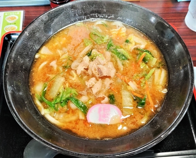 《豚菜麺》900円 イベリコ豚が入った味噌スープのうどんで、メニューには人気No.1との表記がありました。 うどんは3玉まで同料金で、今回は2玉いただきました。 やや甘さを感じる味噌スープで、野菜たっぷりで、おいしくいただきました。 ちなみに、人気No.2は『だし割りカレーうどん』です。