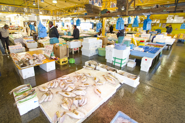 1階では新鮮な魚介類を格安で購入できます。