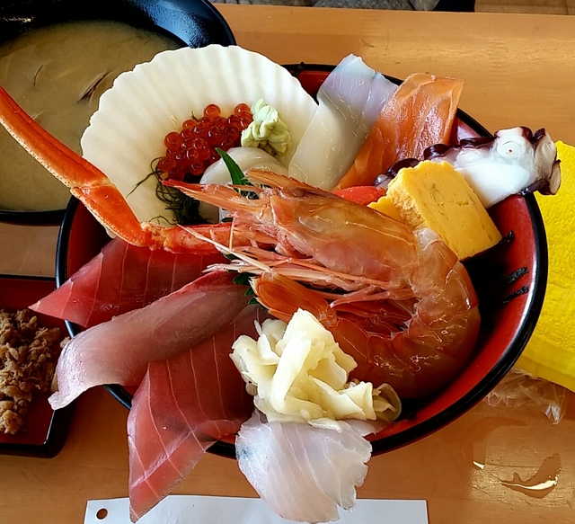 海鮮丼や刺身定食がオススメかな。10時からやってるので早めに行くと待たずに利用できますよ。 お昼どきになると席数は結構あるけど混むので。