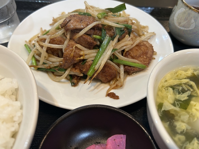 駐車場は店の向かい側です。レバニラ定食、回鍋肉定食ランチをいただきました。柔らかくて食べやすいレバーでした。回鍋肉はピリ辛でした。