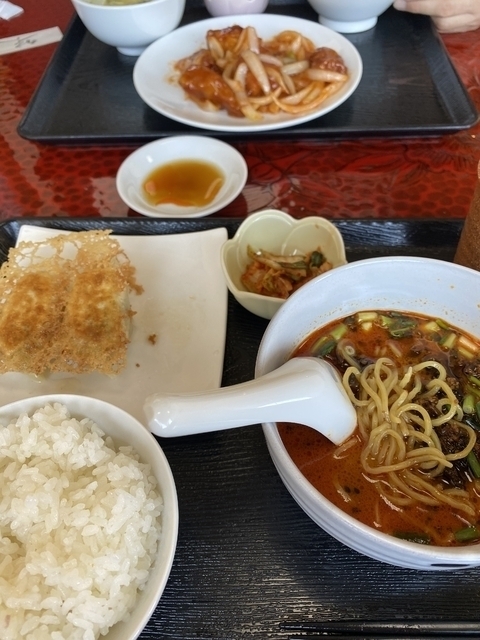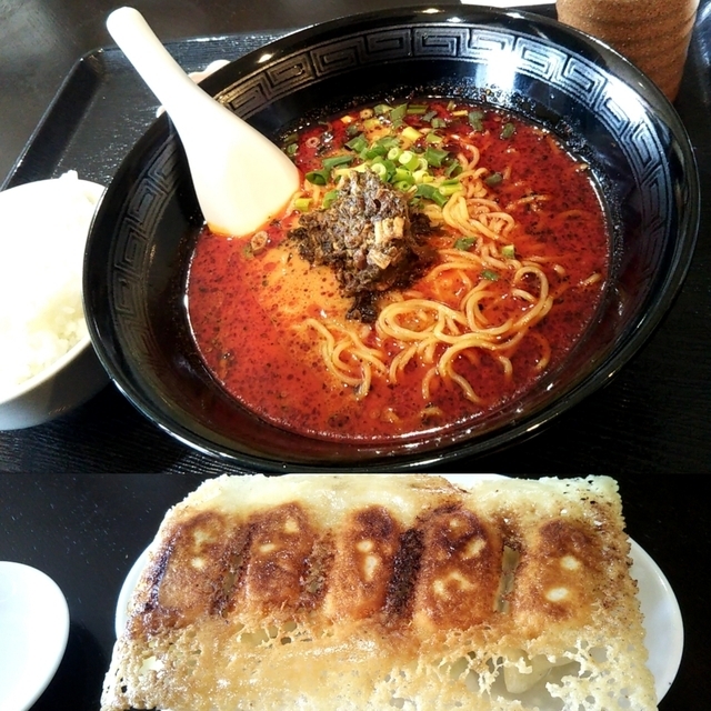 担担麺と羽根付餃子を注文しました♪担担麺は辛目の麺固めで。こくのあるスープに辛さがバッチリです。麺も適度な茹で加減で良かったです。羽根付餃子は羽根のパリパリと具のジューシーさがたまりません。また訪問します♪ ランチはサービスでライスもつきます
