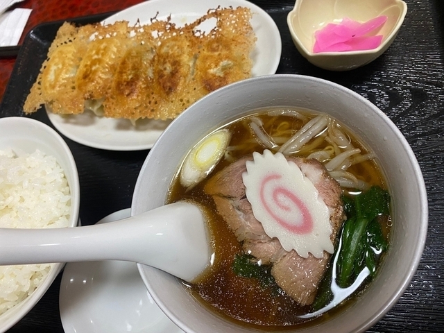 セットメニューを見つけたので 通常餃子5個に醤油ラーメンセットをいただきました。 下妻には美味しいラーメン店が多くあります。