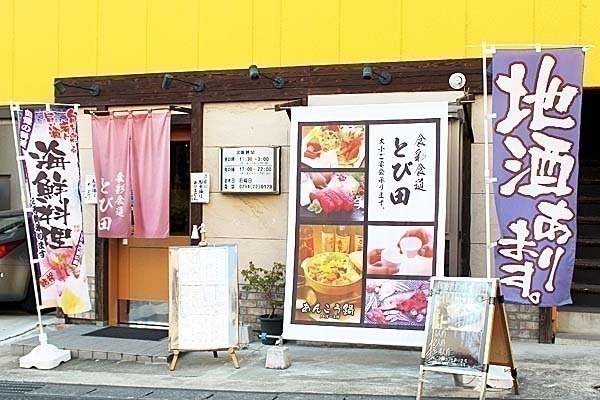 日立駅から歩いて3分、「平和通り」からすぐの『食彩食道とび田』は、美味しい料理と豊富な酒類、そして居心地の良い気配りで、知る人ぞ知る人気店です。2007年11月のオープン以来、地元の皆様に愛されて参りました。当店は、旬の食材を中心に、素材の味を活かしたお料理を提供。鮮度にこだわり、最も美味しい状態でお客様に届けることに心を砕いています。また、珍しい日本酒や、手作り焼酎など厳選したアルコールの品揃えも豊富で、地元日立の限定酒なども扱っています。