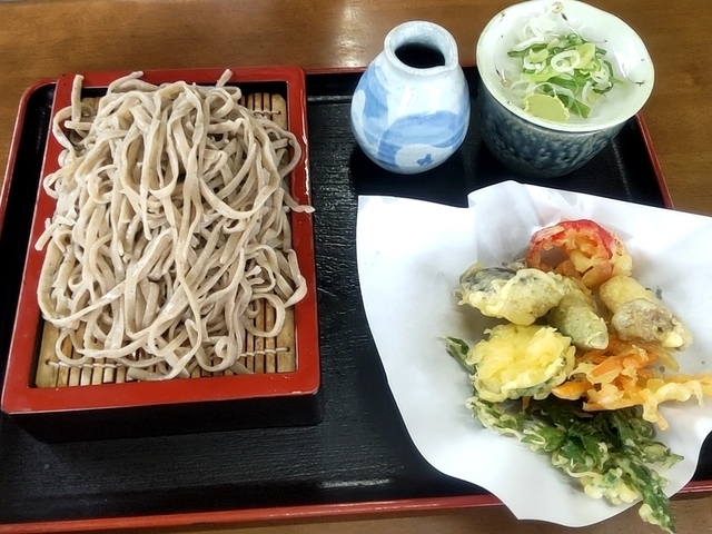 石岡市の景観重要建造物群指定の 茅葺屋根の蕎麦屋。 ◆天ざるそば1200円 ◆天もりそば1150円 そば粉は常陸秋そば。 太めの平打ち麺は、 食感や香りが楽しめる美味しいそば。 天ぷらは地元野菜を使用して サクサクにあがっています。