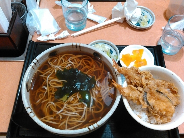 すぎのや系列のお店です。 食券制ですがメニューが多いのでいや~迷うわ~。 無難にお得な天丼とそばのセットを頼みました。 天丼はハーフですが、そばは一人前ですね。 650円はお得だと思います、次はお店推しのかき揚げを食べてみようかな。