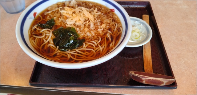 セット物も充実していて通し営業で使い勝手が良いお店ですがこの辺あまりこないので 久しぶりに来店。 また値上げしたようですがたぬきそば400円を。 汁は濃いめで天かすサクサクでわかめも美味しいです。 温そばにも蕎麦湯あるとうれしいね。
