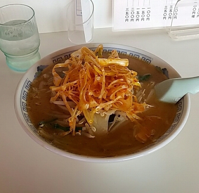 ●ねぎみそラーメン750円 見た目、辛そうなネギや もやしが大量。 スープを一口。 以外とマイルドで、 見た目ほど辛くはない。 麺は極細麺のストレートタイプ。 やはり辛味噌が特徴で、 癖になる味。
