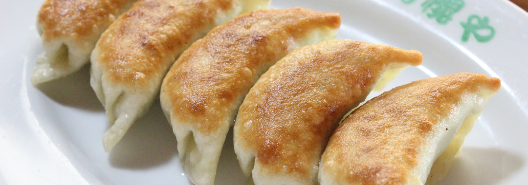 鉄鍋でこんがりと揚げ焼きした餃子。モチッとした皮の中にはホクホク餡♪ついつい何個もほおばりたくなる餃子はファンの多い逸品です。