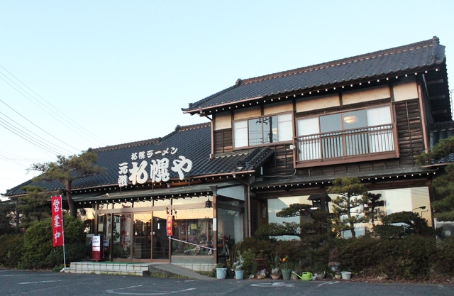広い駐車場と趣のある外観が目印です。店内もゆったりとしたスペースがございます。