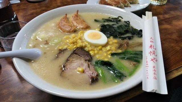 お昼時だったので何食べる?となり地元がこの辺りの主人のおすすめのこちらに。。 当時、味噌ラーメンに餃子が入ってたらしいです。 主人自体、10数年ぶりの訪問のようですが、 食券制とか今でも変わらないよう。 で味噌ラーメンと餃子を食べました。 餃子の焼き具合がまず芸術。美しいです。 味は野菜が多めのさっぱりしてるタイプで何個でも行けそう。 味噌ラーメンも、スープはどちらかというとあっさりしたタイプですがちゃんとコクがあって美味しい。 さらに麺も太すぎず私が好きな普通の麺のタイプ。 食券なのに、ちゃんと帰る時にありがとうございましたと声がけしてくれるのがいいですね。