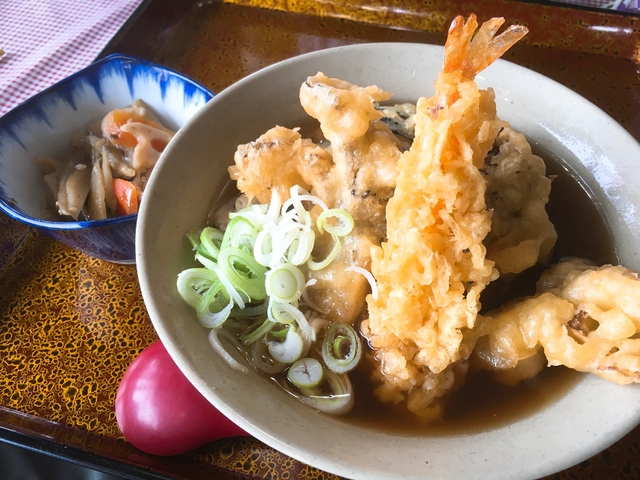たまにはサフォーク以外を食べてみようと、やたらと舞茸メニューが多いので、 舞茸天ぷらそばをオーダー。 舞茸だけをイメージしていたので、エビがドンと乗っていてビックリ。 天ぷらはカリカリ系で、つゆに浸しても食感が心地よく残ります。 そばは何も書いていなかったけど、麺の太さがまちまちなので手打ちのようです。 場所柄常陸秋そばなのでしょうか?美味しかったです。 隣の席の人が、ここはカツ丼が美味いんだと言って、3人ともカツ丼を食べていました。 何を食べてもハズレなしだと思いますが、カツ丼が気になって仕方ありません。