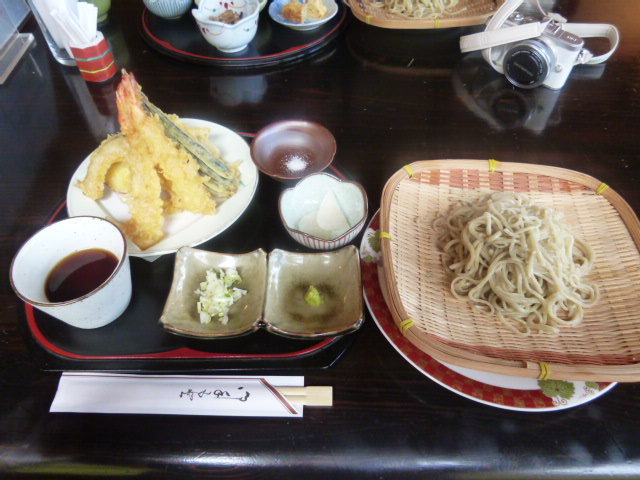 花園神社への参拝の帰りに蕎麦を食べに行きました。 手打ちそばのメニューは3種類の中から「海老・野菜天ざるそば」を選びました。 田舎そばとあるので太めのそばを想像していましたが、細めの食感がいい蕎麦でした。 サックリ揚がった天ぷらもおいしくて食がすすみます。 蕎麦湯がお椀で出てきたのはオドロキました。 お椀のほうに汁を入れるんですね。 おいしかったです。