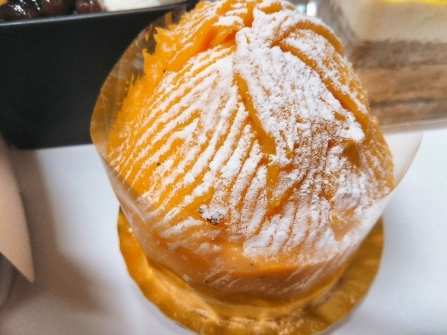 かぼちゃのモンブラン☆ カスタード、生クリーム、かぼちゃクリームの中に栗が入ってました‼ 秋を味わえるモンブランです‼