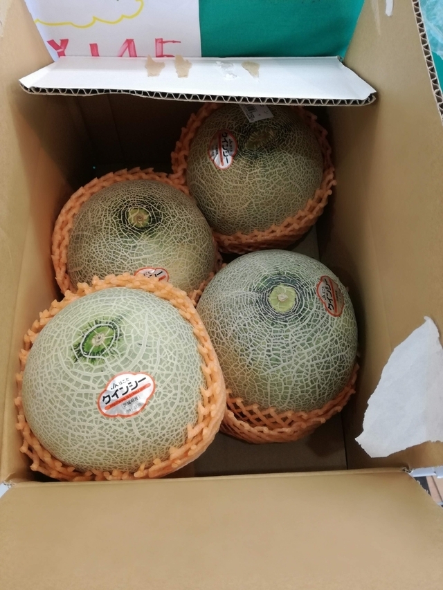 親戚から手土産にいただきました。私の世代だとメロンは高級品でめったに食べられなかったのでちょっと罪悪感を感じつつ半分に切って大人食い?しました。幸せな時間を過ごしました。