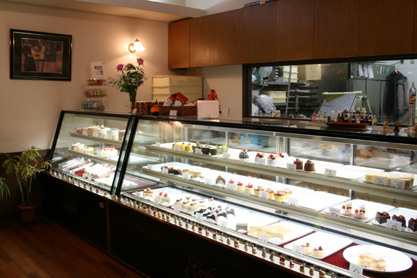 シックな雰囲気の店内には、彩り豊かなケーキが並んでいます。
